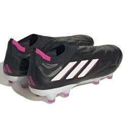 Adidas Copa Pure+ FG Herren-Fußballschuhe für festen Boden ohne Schnürsenkel kombinieren einen klassisch inspirierten Look mit leichtem Komfort. Das gesteppte, nahtlose Leder im Vorfußbereich ist über Schichten aus geschmeidigem Schaumstoff gespannt und sorgt für ein gedämpftes Tragegefühl.